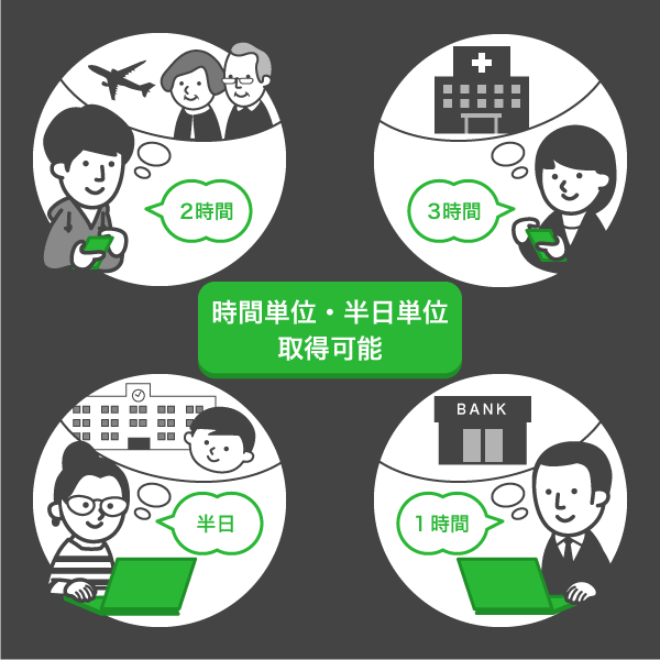 パソコン、スマホから有給休暇、代休、振休等、様々な休暇が管理ができます。